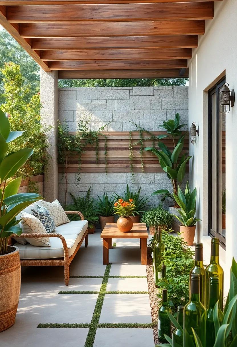 Wine Bottles: Create a unique, artistic boundary by embedding glass bottles neck-down into the ground