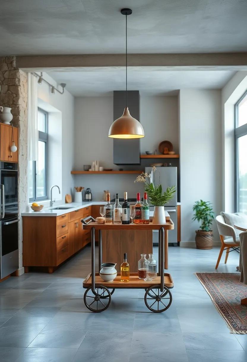 Rustic Bar cart: Incorporate a charming bar cart made from wood or repurposed materials to entertain guests in style