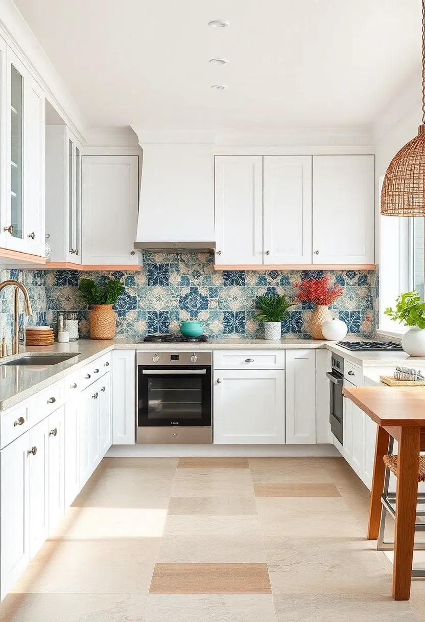 Eclectic Bay: A playful mix of white cabinets and colorful tiles that celebrate the informal spirit of a relaxed beach house