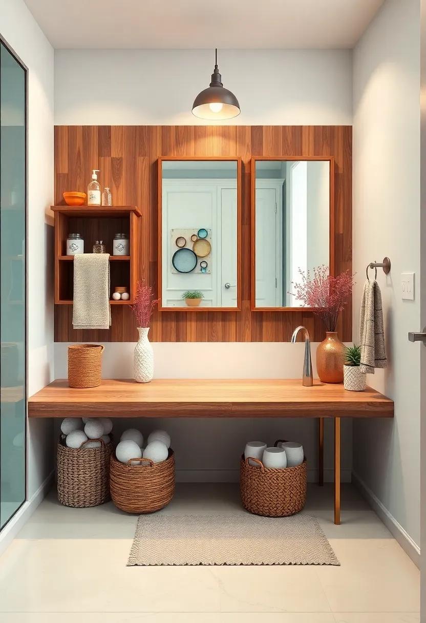 Create a rustic Floating Shelf: Use reclaimed wood to craft a floating shelf that adds charm and provides storage for towels and decor