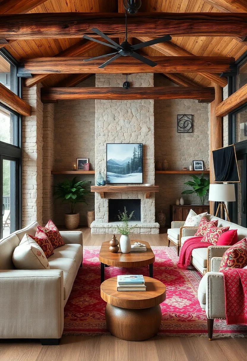 Rustic Mountain Lodge: Incorporate wood beams, stone accents, and warm textiles to create an inviting retreat that mirrors the tranquility of a mountain cabin