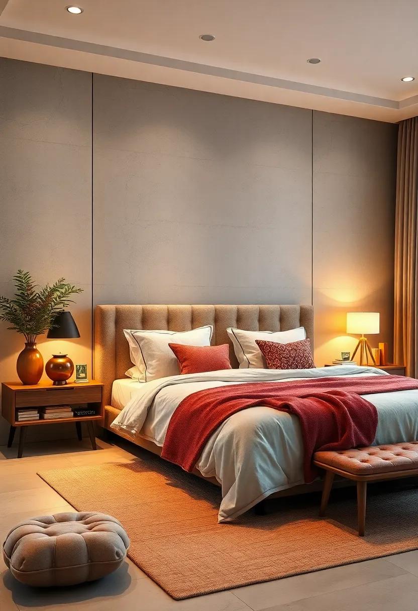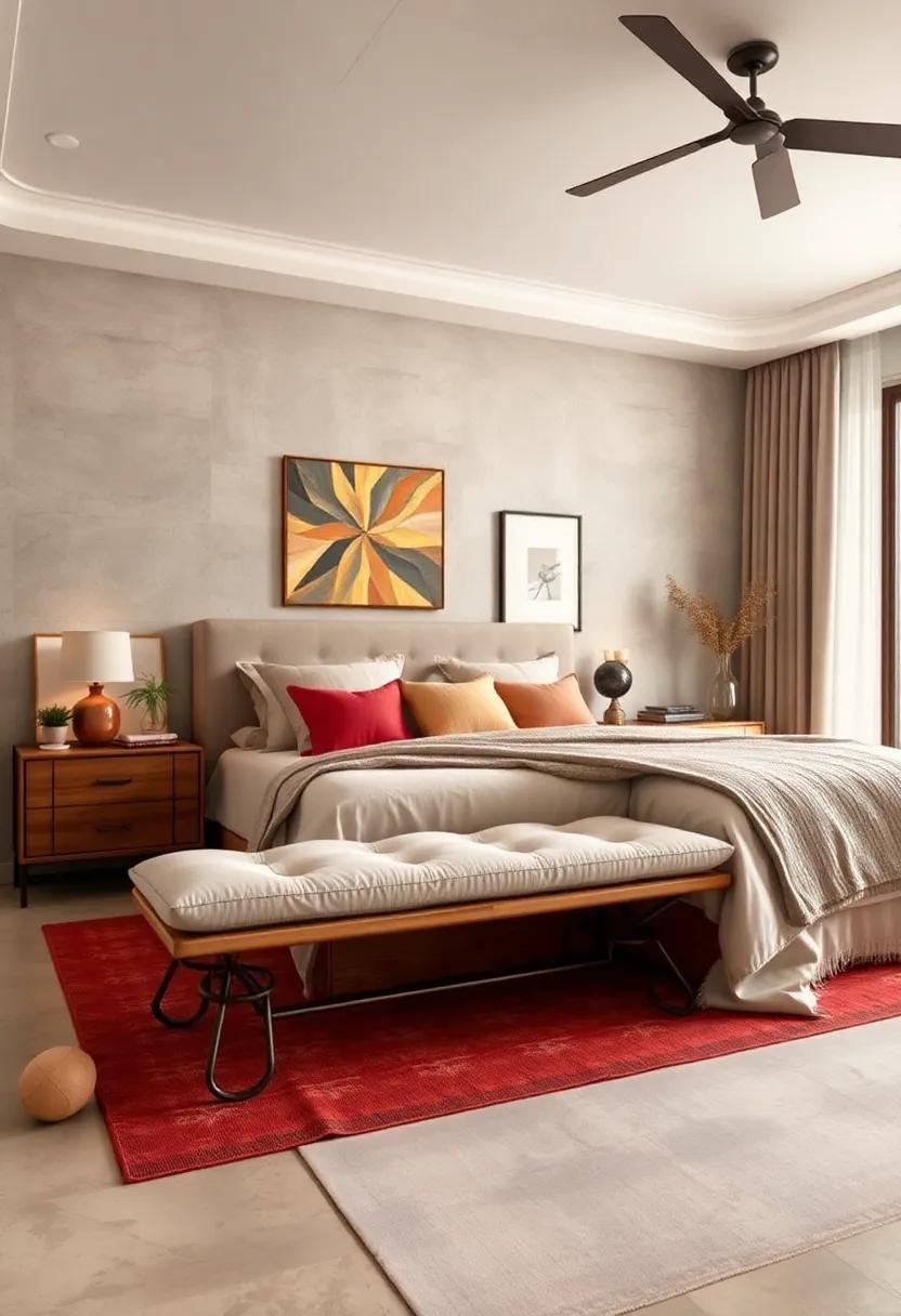 Accent Bench: Place a stylish bench at the foot of your bed for additional seating and a decorative touch