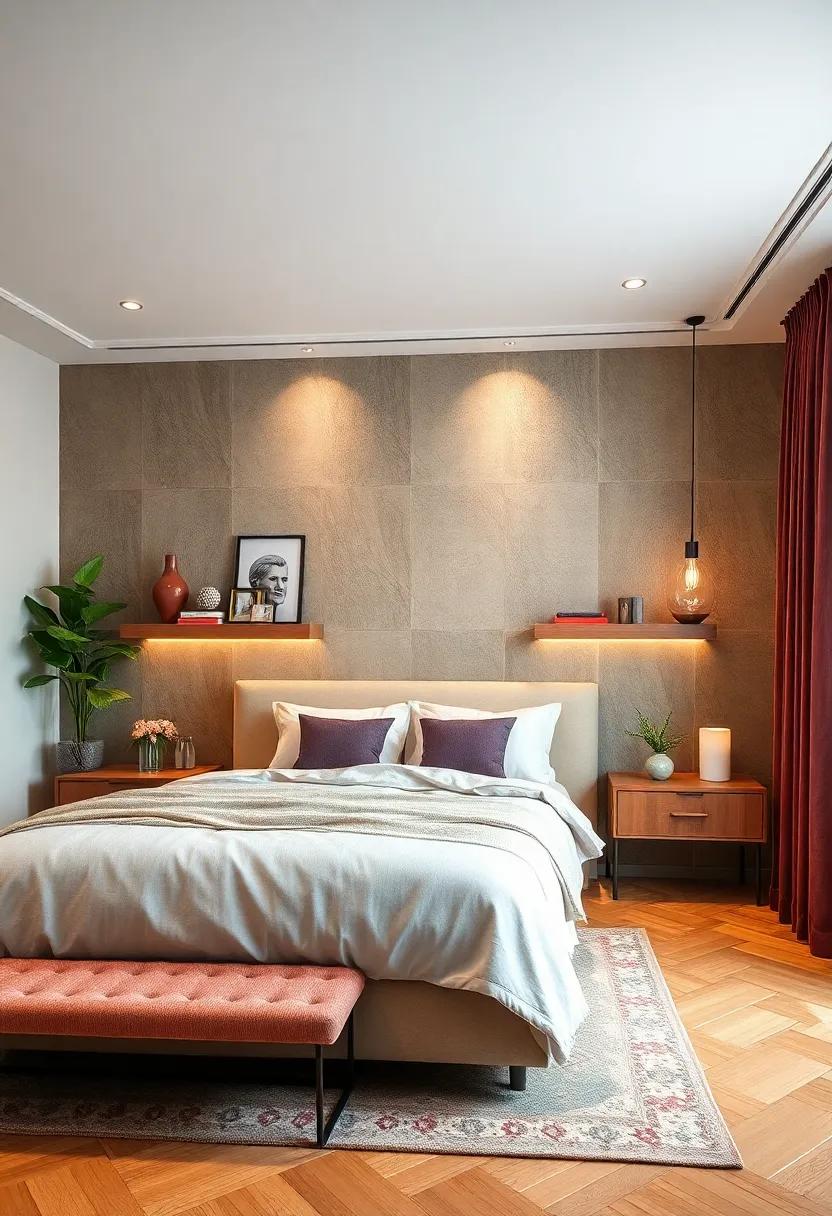 To enhance the functionality of your floating shelves, incorporate decorative elements that reflect your personal style. From sleek lamps and photo frames to potted plants and books, these accents can seamlessly blend form and function. Additionally, a strategically placed mirror above the shelves can create the illusion of space while adding depth to your décor. Explore various materials—from wood and metal to glass—to complement the overall design of your bedroom. The result? A chic and organized space that feels both inviting and effortlessly sophisticated.