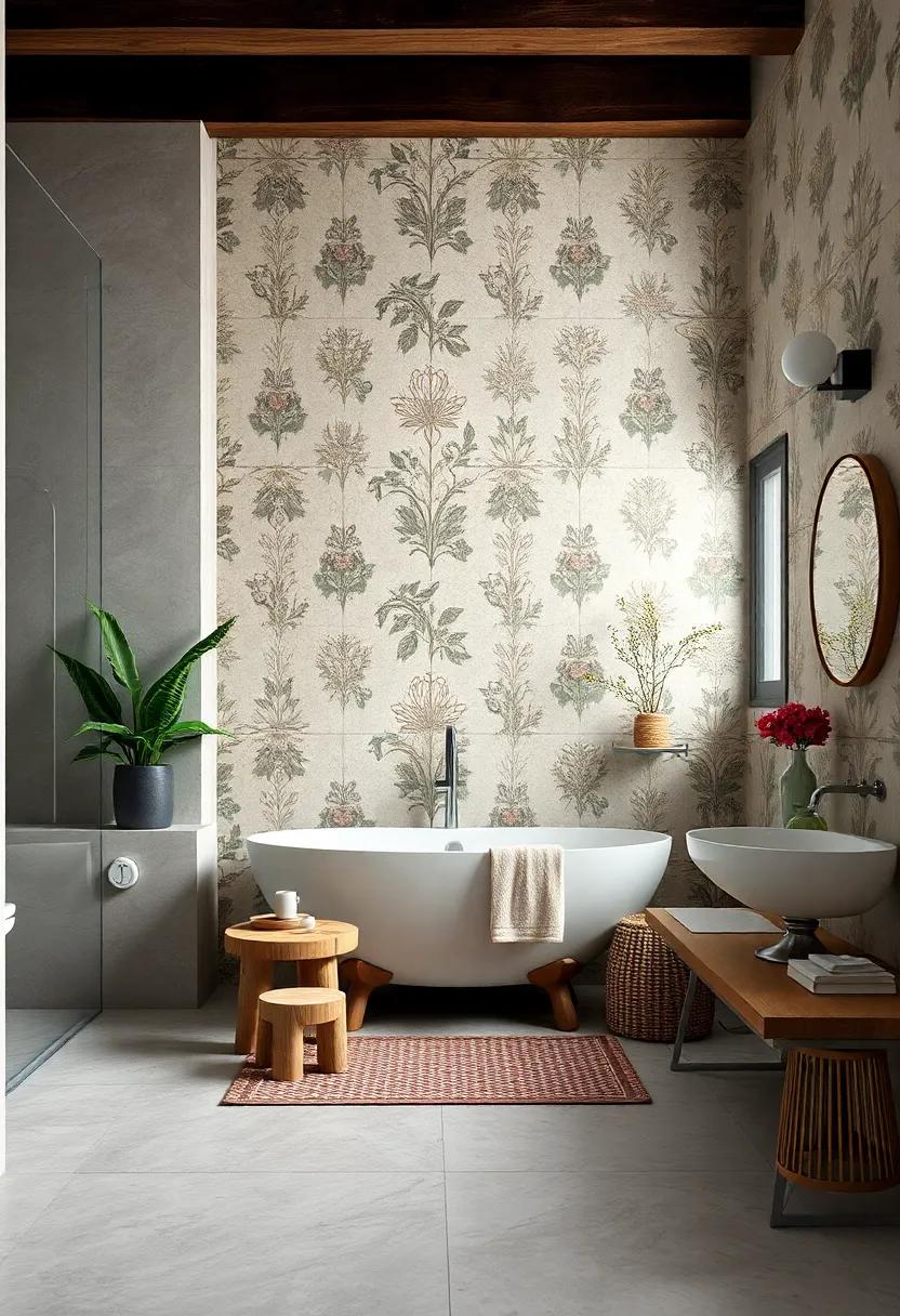 incorporating wallpapers into your bathroom design can be transformative. Consider a mix and match approach by blending floral and geometric designs, creating a stunning feature wall or a whimsical half-wall treatment. Combine this with your rustic elements for a truly eclectic vibe!