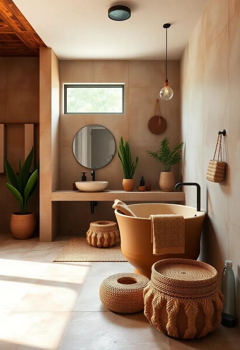 Transform your bathroom into a serene retreat by embracing the warmth of an earthy color palette. Terracotta tiles can serve as a stunning focal point, grounding the space with their rustic charm. Pair them with muted green accents such as painted cabinets or potted plants that echo the calming hues of nature, promoting relaxation. Soft browns, reminiscent of rich wood grains, can be introduced through floating shelves, cabinetry, or natural fiber textiles. These organic colors not only enhance the aesthetic appeal but also create a cohesive look that encourages a sense of tranquility and comfort.