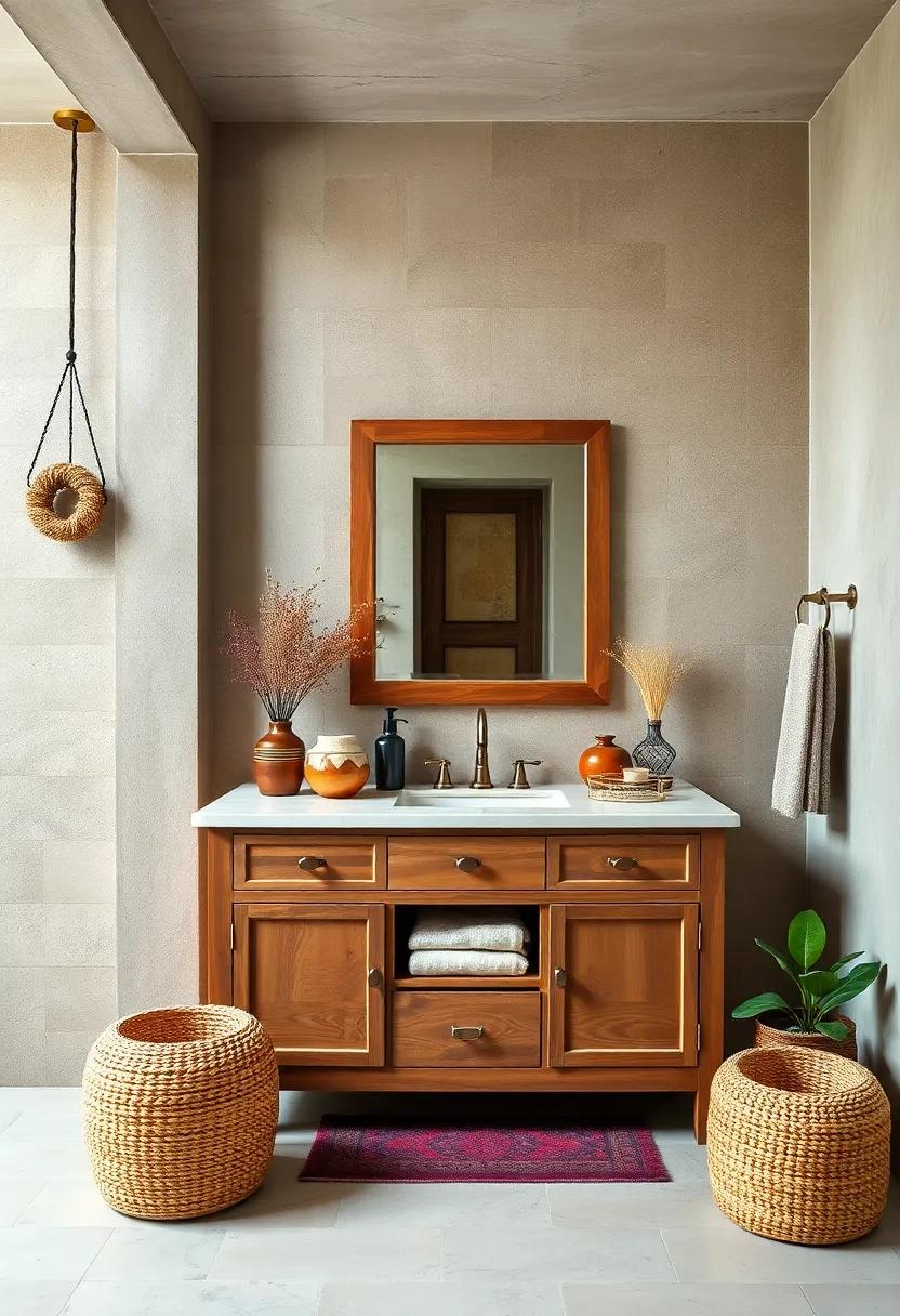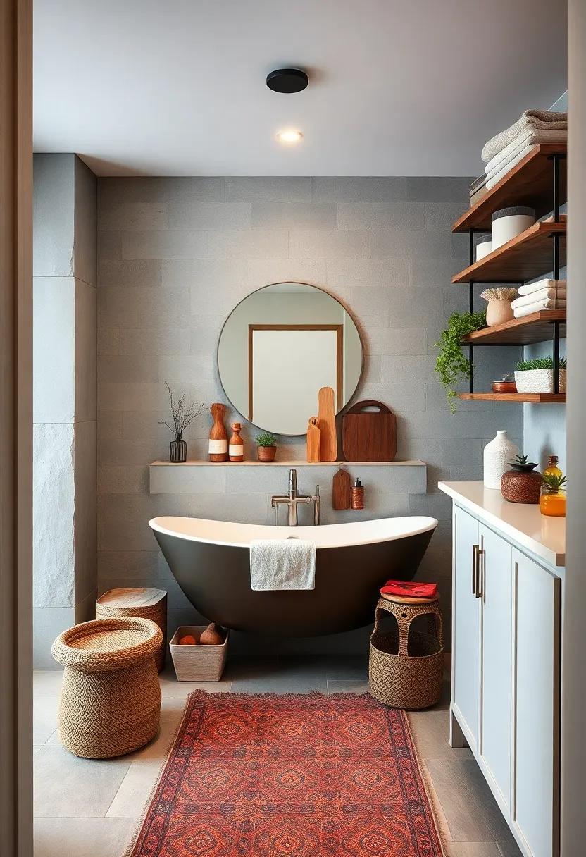 unique Textiles: Choose handmade or artisan textiles for towels and shower curtains; look for bohemian patterns or natural fibers