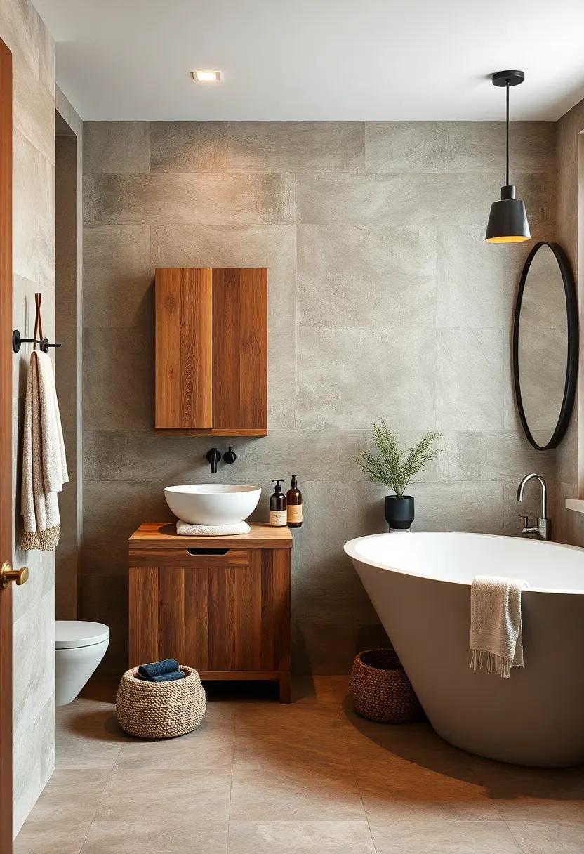 Layered Textures: Combine rough and soft materials like smooth tiles with plush towels for a visually rich and inviting space