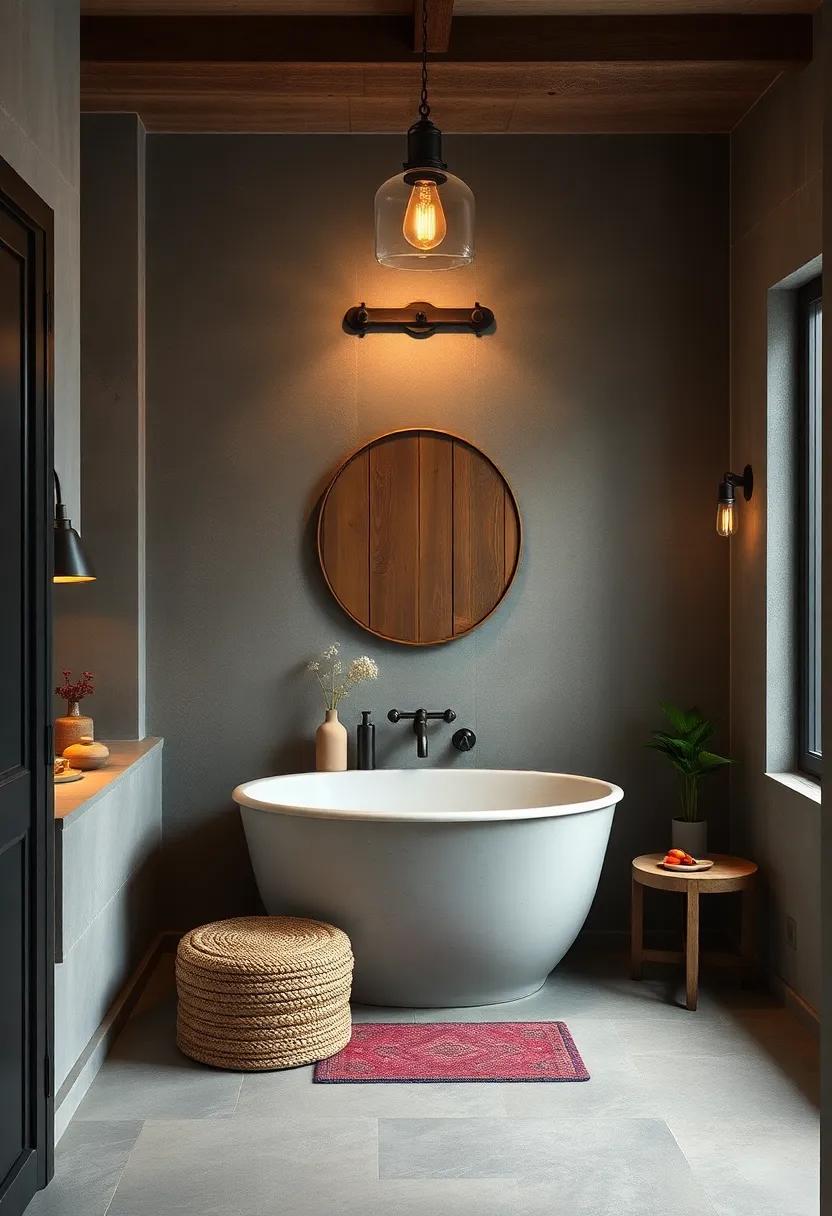 Transform your rustic eclectic bathroom into a cozy haven by incorporating accent rugs that marry functionality with style.natural fiber rugs, such as jute or sisal, deliver a warm, organic feel that enhances comfort underfoot while maintaining a laid-back vibe. These materials are not only durable but also bring in earthy tones and textures that beautifully complement rustic wood or stone finishes. Layering these rugs can create a visually captivating contrast; consider placing a bold-patterned rug on top for a playful touch. This technique not only adds depth to your space but also helps delineate specific areas, like the vanity or shower zone.