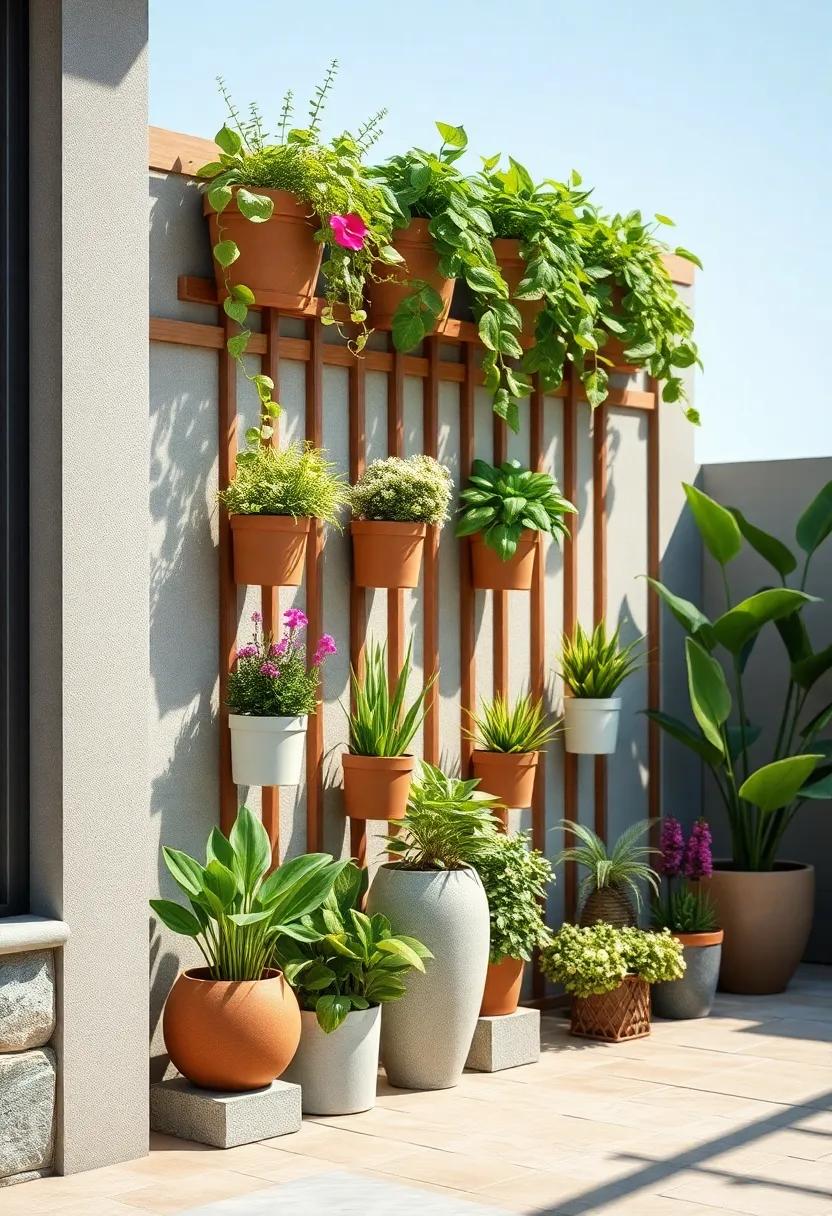 Choosing plants that complement each other in color and texture also contributes to a cohesive design. For example, pair the silvery hues of trailing succulents with the vibrant greens of upright tropical plants. This not only creates a visual contrast but also establishes harmony within the arrangement.Make sure to consider the light and water requirements of both types, as this will ensure a thriving, low-maintenance garden. Ultimately, a balanced blend of these elements can turn your ordinary fence into a lush vertical oasis that captivates at every glance.