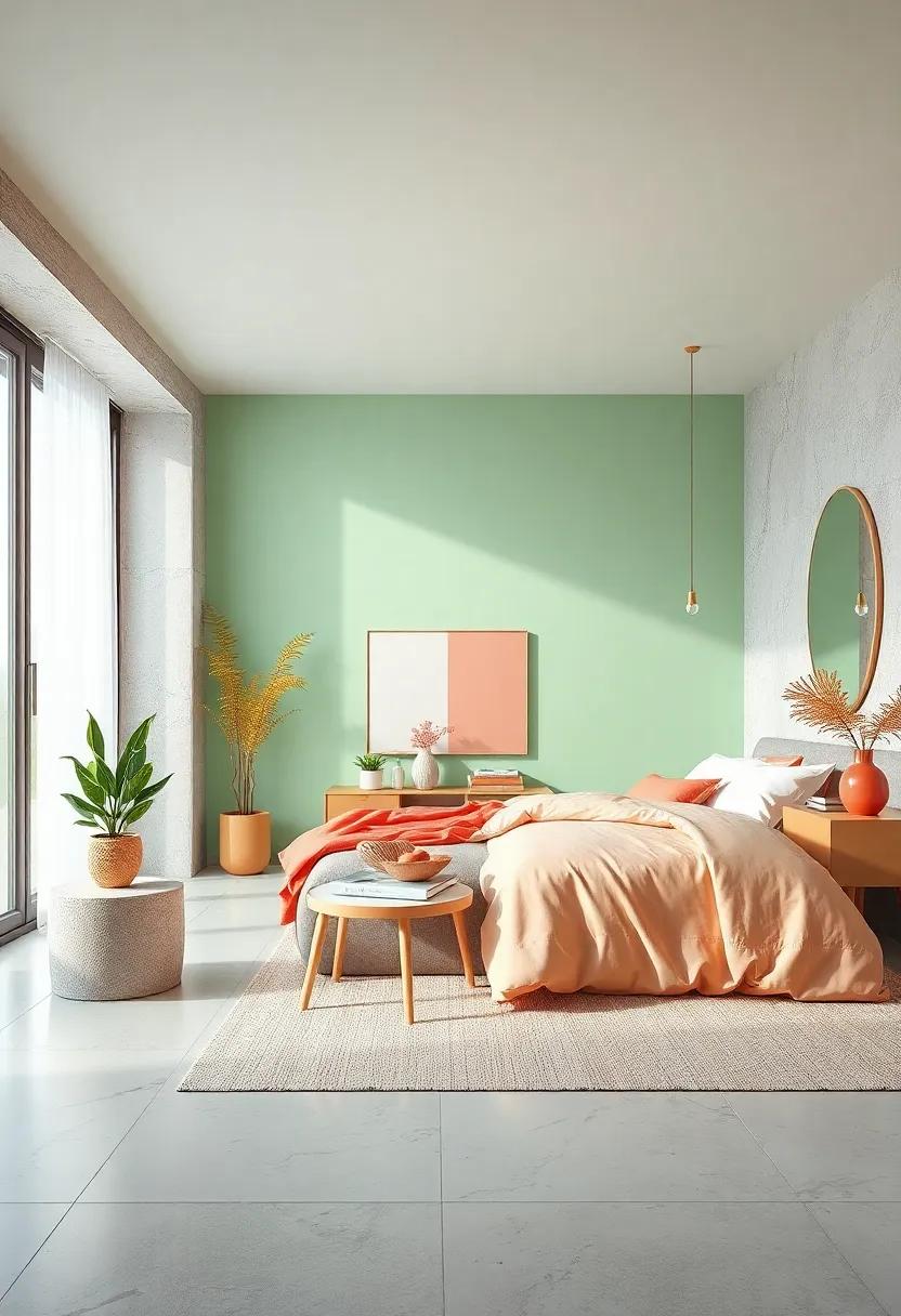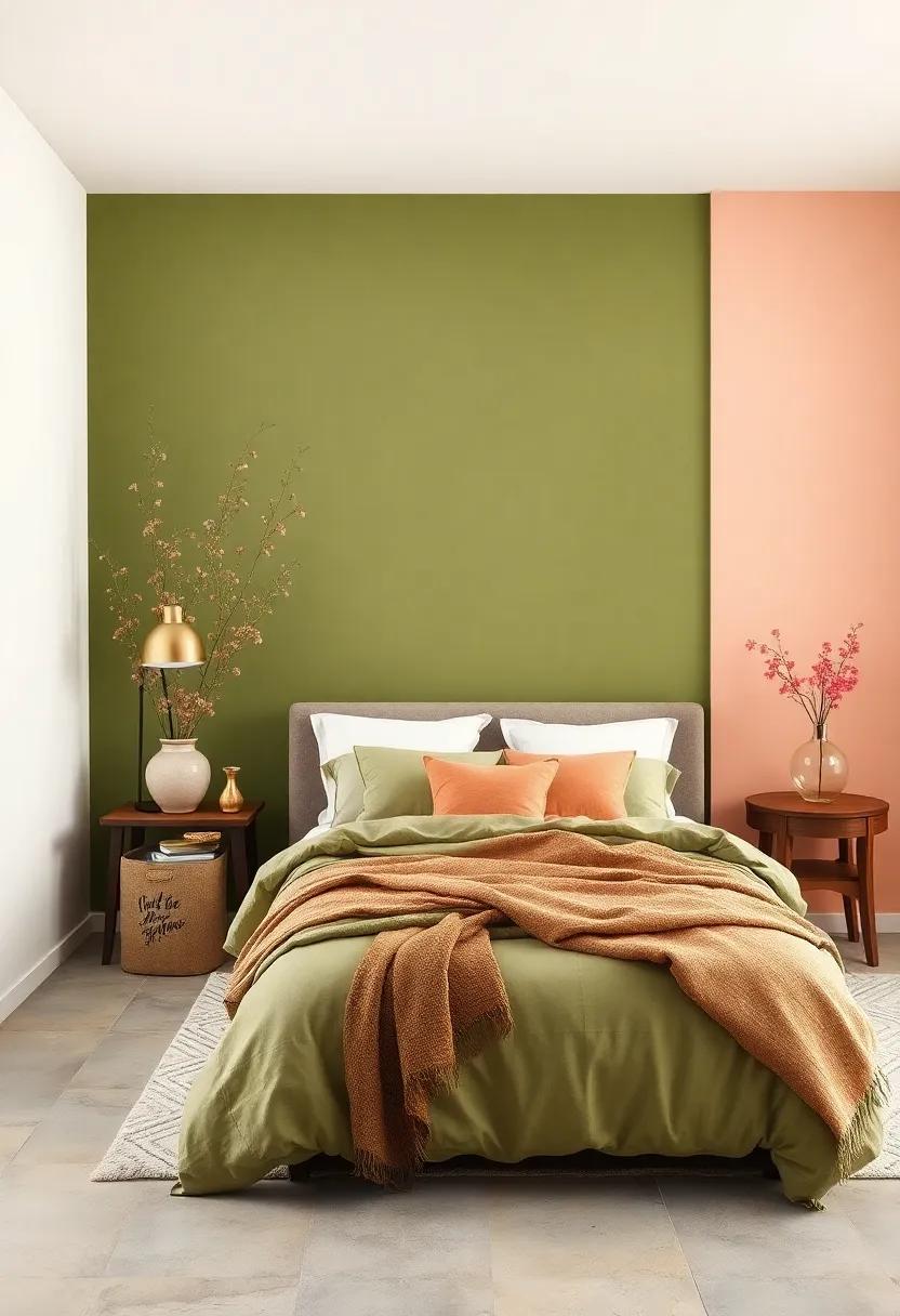 Olive Green and Soft Peach: A harmonious blend that adds a touch of nature and warmth, creating a peaceful retreat perfect for relaxation
