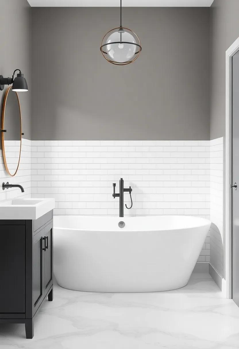 Consider how the placement of shiny black plumbing fixtures and matte metal shelves can elevate the overall decor. Use a mix of visual textures to create depth; as a notable example, pair smooth subway tiles with the ruggedness of a reclaimed wood vanity. To further enrich the look, highlight these contrasting materials with statement pieces like a vintage mirror framed in weathered wood or eye-catching pendant lights with an industrial flair. Such thoughtfully curated details not only foster a cohesive environment but also tell a story of evolution, seamlessly blending timeless aesthetics with contemporary taste.