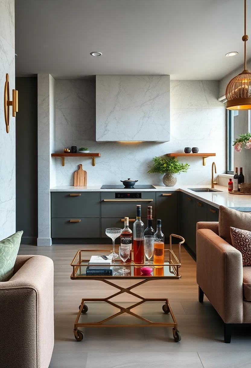 Chic Bar Carts: Incorporate a sophisticated bar cart, styled with premium glassware and curated spirits, to add an element of entertainment to your space