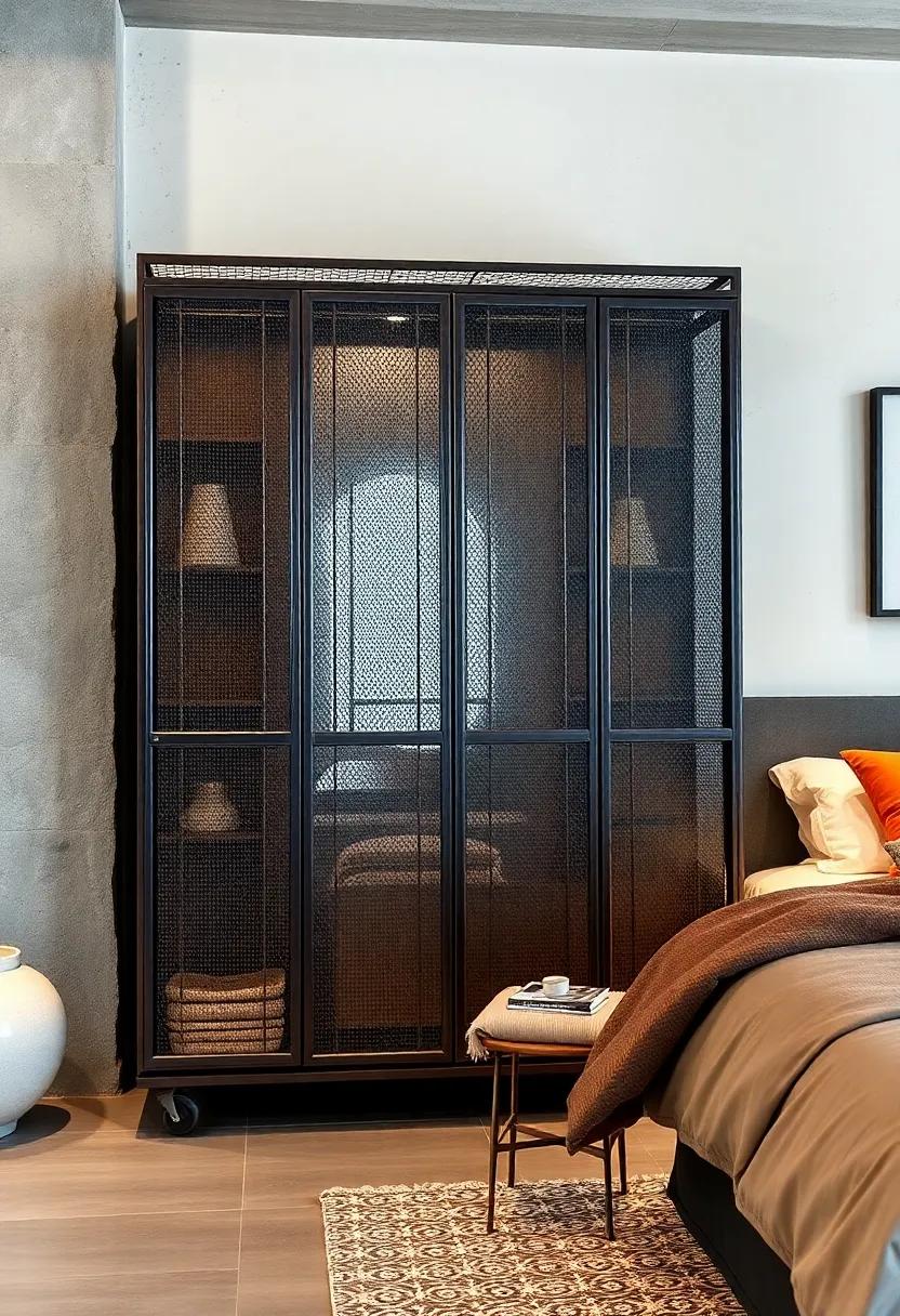Rustic Metal Wardrobe: A vintage-inspired metal wardrobe serves as a stunning focal point, blending functionality with rustic charm, perfect for showcasing your personal style