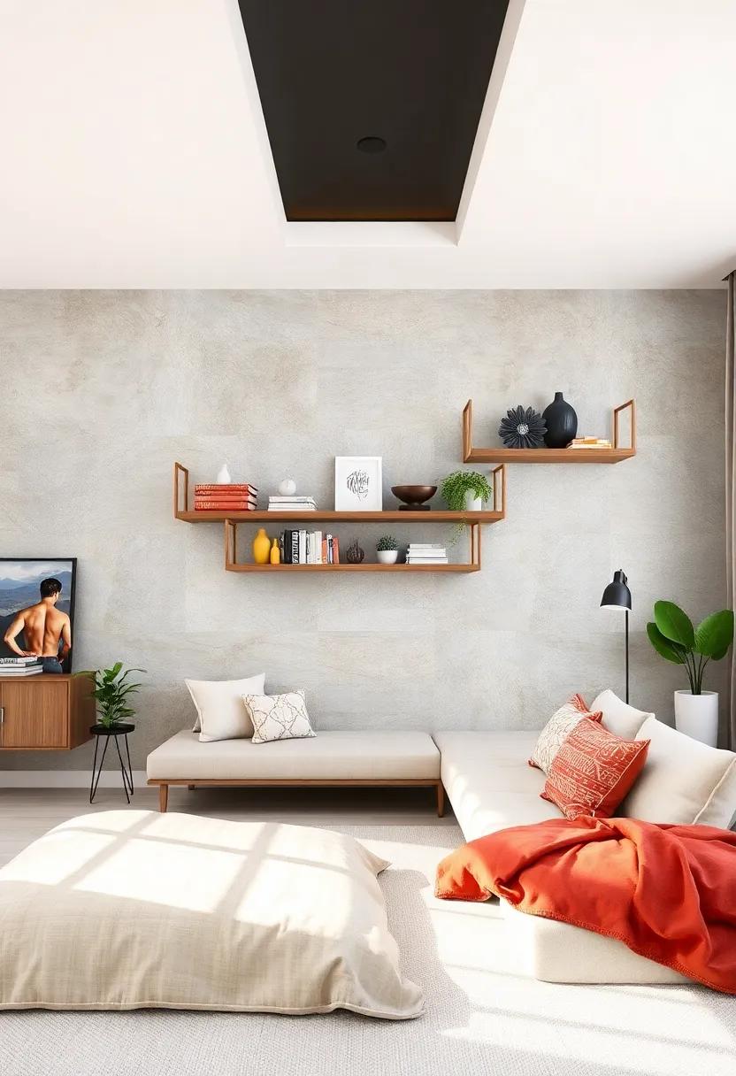 Floating Shelves: Incorporate floating shelves into your wall design for a functional twist, displaying books and decor in a visually appealing way