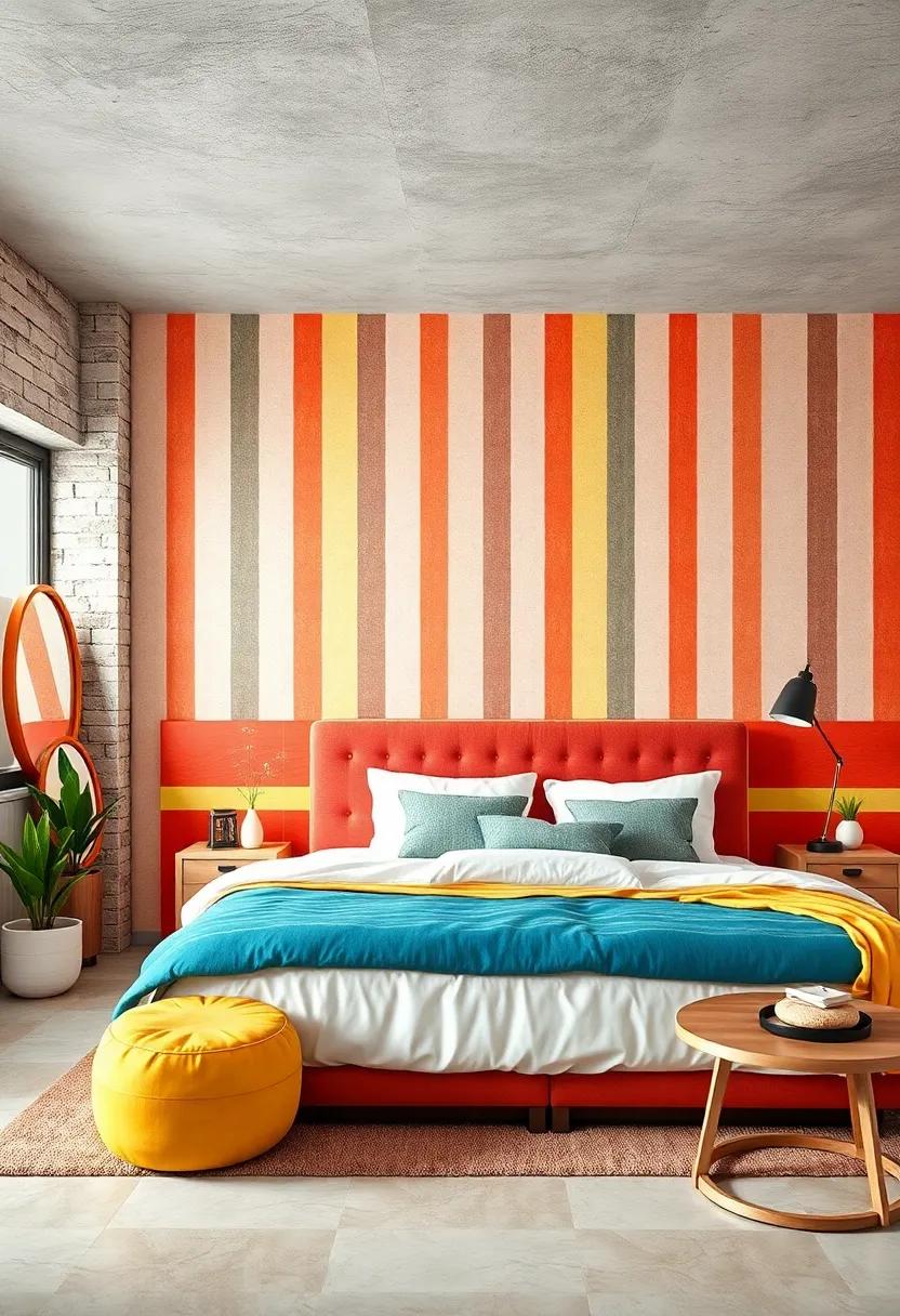 Retro Stripes: Use bold, retro-inspired stripes in lively colors to create energy and evoke a playful atmosphere in your bedroom