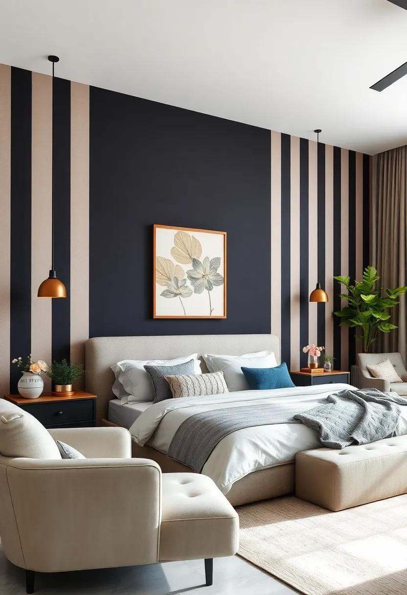 One of the most sophisticated ways to enhance your bedroom is through the artful submission of stripes. Consider using horizontal stripes to draw the eye across the room, creating a sense of space that encourages an airy, open feel. Choose complementary colors that harmonize with your bedding and furnishings,such as a soft blue paired with a crisp white. This combination not only highlights architectural features but also adds depth, making the walls appear more dynamic. For a more dramatic effect, opt for thicker stripes that can serve as a bold statement piece, bringing a focal point to one wall of your bedroom.