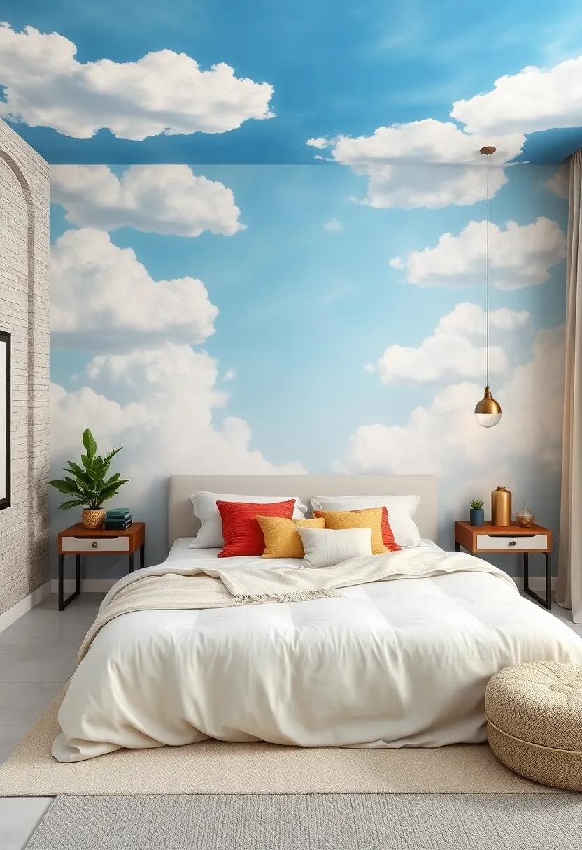 Transform your bedroom into a sanctuary of peace and creativity with whimsical clouds and sky motifs that capture the essence of a carefree atmosphere. Imagine lying beneath a beautifully painted sky, where each brushstroke invites your imagination to soar. You can choose from various styles, ranging from dreamy pastels to bold, vibrant colors that draw the eye and create a sense of wonder. Some ideas to consider include: