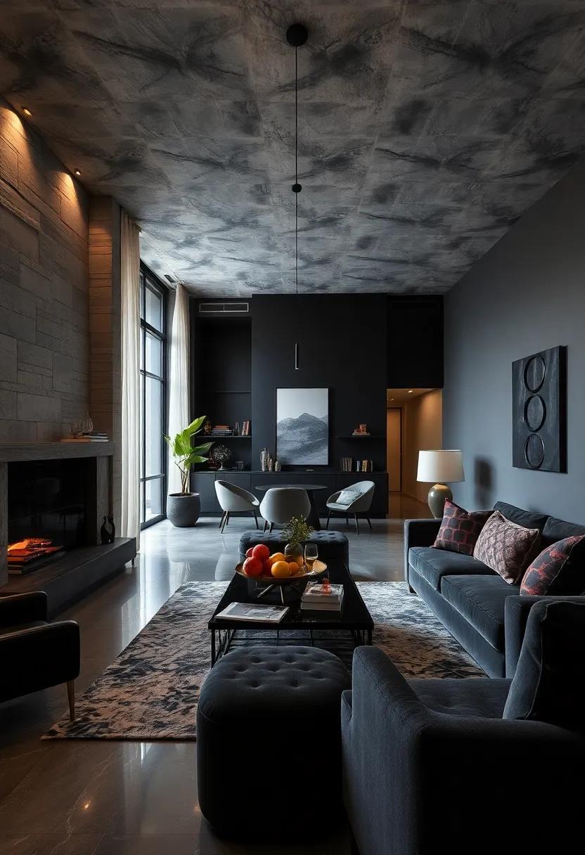Incorporating various textures into a black color palette can transform your space from ordinary to unusual. By layering matte, glossy, and metallic finishes, you add depth and intrigue that draws the eye.Consider using matte black walls as a striking backdrop. This can be complemented by sleek, glossy black furnishings such as lacquered coffee tables or chairs, creating a captivating contrast that enhances the visual appeal. Metallic accents, like a polished chrome lamp or gold-framed art, can punctuate the darkness with hints of shimmer, fostering a balance that elevates the entire atmosphere.