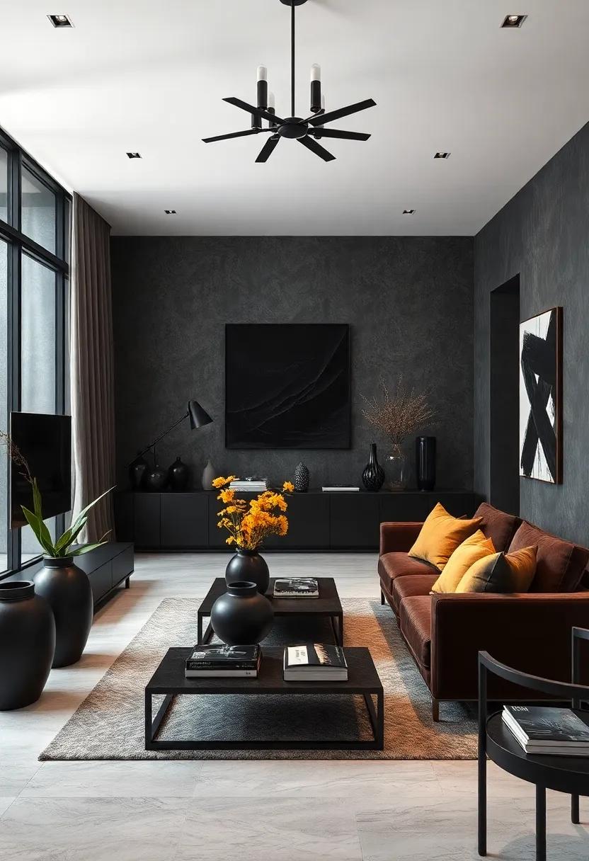 Black Accent Walls: Consider painting an accent wall in deep black to create a dramatic focal point in your home