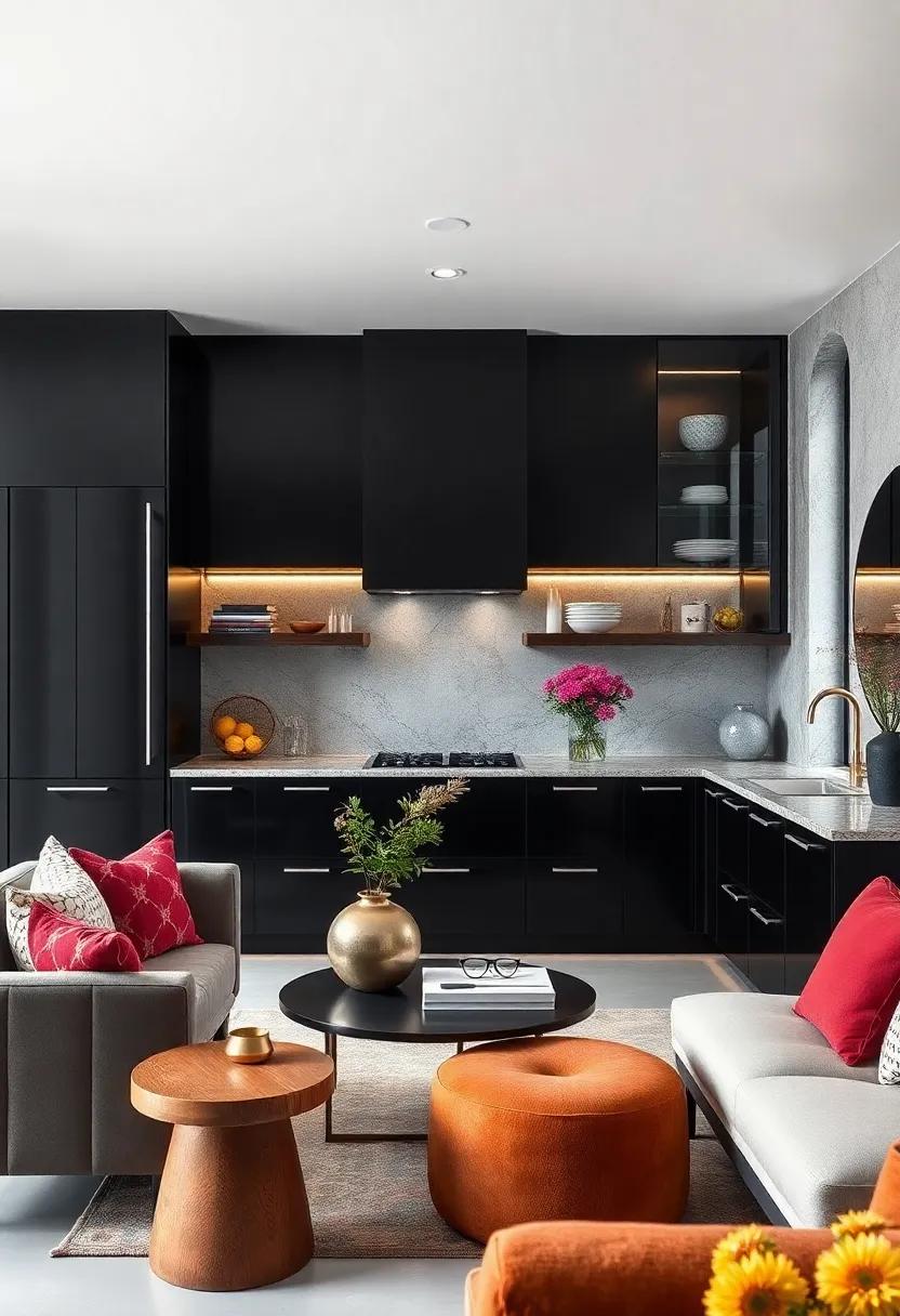 To maintain a clutter-free environment while using black cabinetry, consider an open shelving concept or integrated storage solutions. This not only showcases your selected decor items and accessories but also avoids overwhelming the space. Utilizing LED strip lighting under the cabinets can add an ambient glow, emphasizing the sleek lines and inviting a warm atmosphere. A well-designed layout complemented by strategic lighting transforms black cabinets from mere storage units into statement pieces that provide both style and functionality.