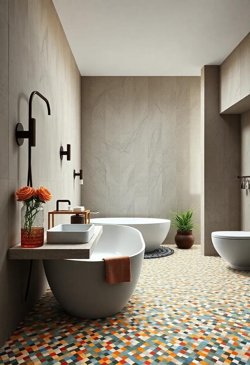 In such a bathroom, the interplay of light and texture blurs the boundaries of modern design, offering surprises at every glance. Think bold color palettes that evoke a bohemian spirit, paired with whimsical lighting fixtures that echo the mosaic themes. The artistry isn’t just in the tiles; it’s in the very design choices that complement them. Creative elements such as: