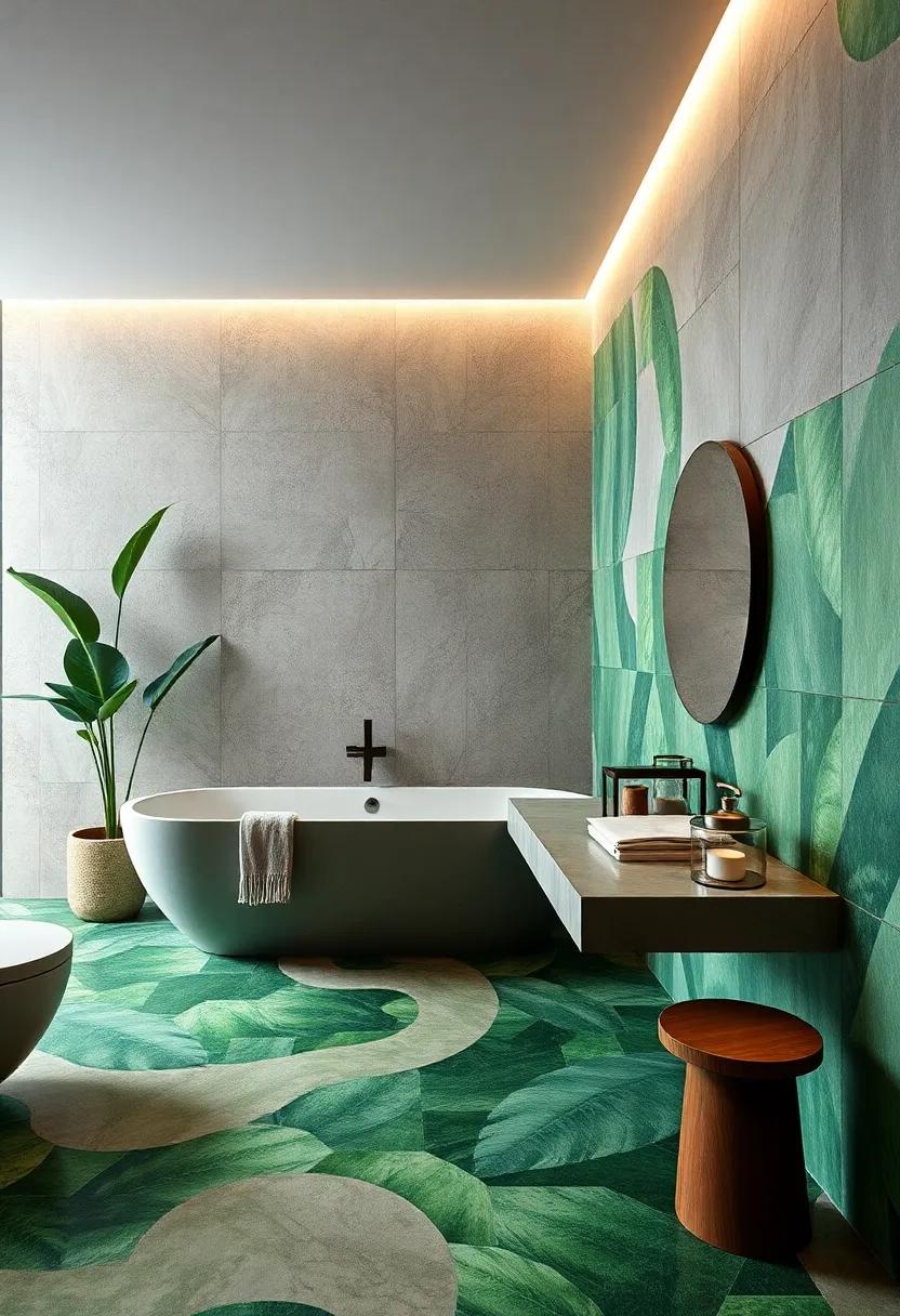 step into a world where every tile is a brushstroke in a grand landscape painting. Imagine your surroundings laced with tiles resembling the intricate patterns found in nature, reminiscent of lush foliage swaying gently in the breeze. The vibrant greens, earthy browns, and pops of floral colors come together in an artful display, transforming the bathroom into a sanctuary that radiates liveliness. Envision intricate geometric designs portraying leaves, vines, and blooming flowers, making each step into the bathroom feel like a stroll through a vibrant garden. It’s not just a space for daily cleansing; it’s a sensory experience that brings the outdoors inside,encouraging daily routines to take on an adventurous spirit.