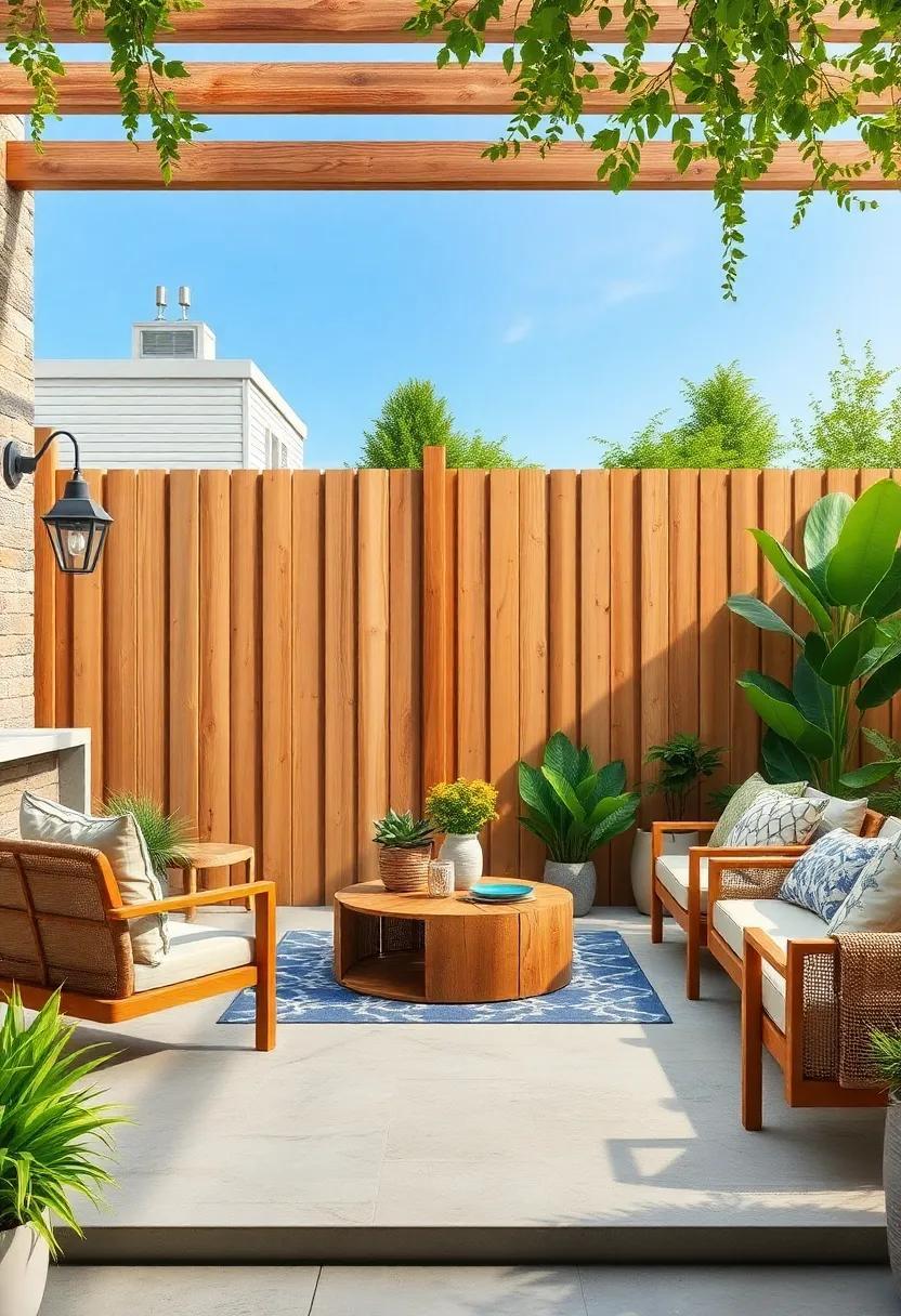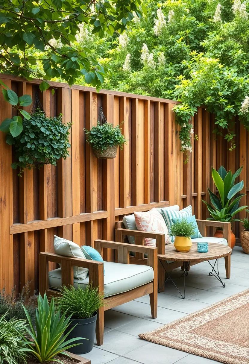 Decorative Wooden Screen Fence: Use a decorative wooden screen fence to not only provide privacy but also act as a stunning visual element in your landscape