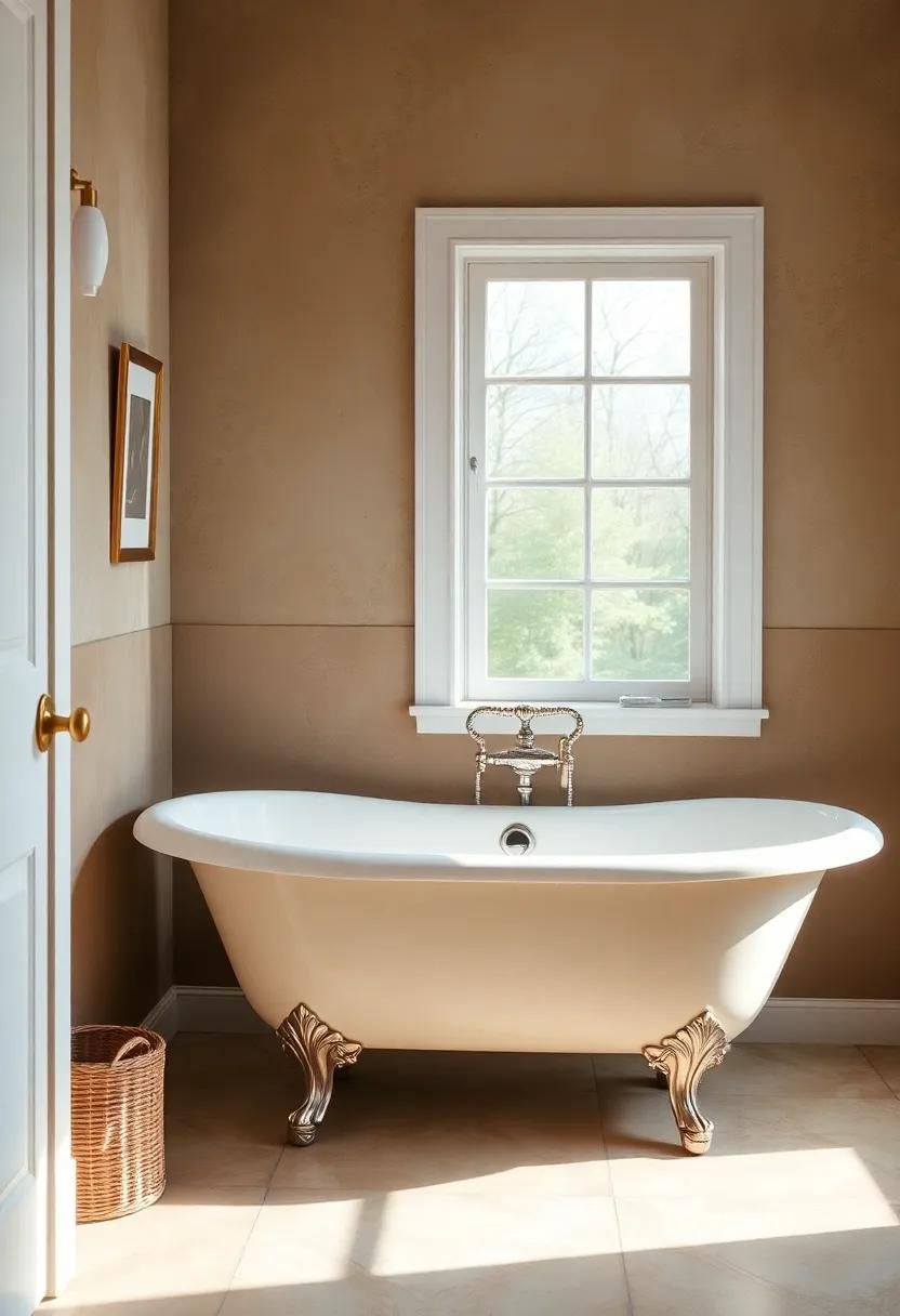 Incorporating golden accents into a traditional clawfoot tub setup adds a touch of opulence that complements the vintage aesthetic beautifully. The warm glow of gold, whether it’s through ornate fixtures or detailed hardware, creates an inviting atmosphere. Combined with a carefully selected ornate mirror, the eye is drawn not only to the stunning tub but throughout the entirety of the space. These vintage mirrors can serve both function and decor, reflecting the luxurious features and enhancing the overall sense of depth and elegance.