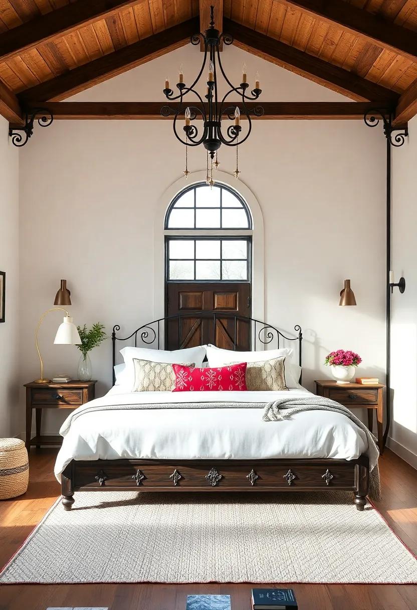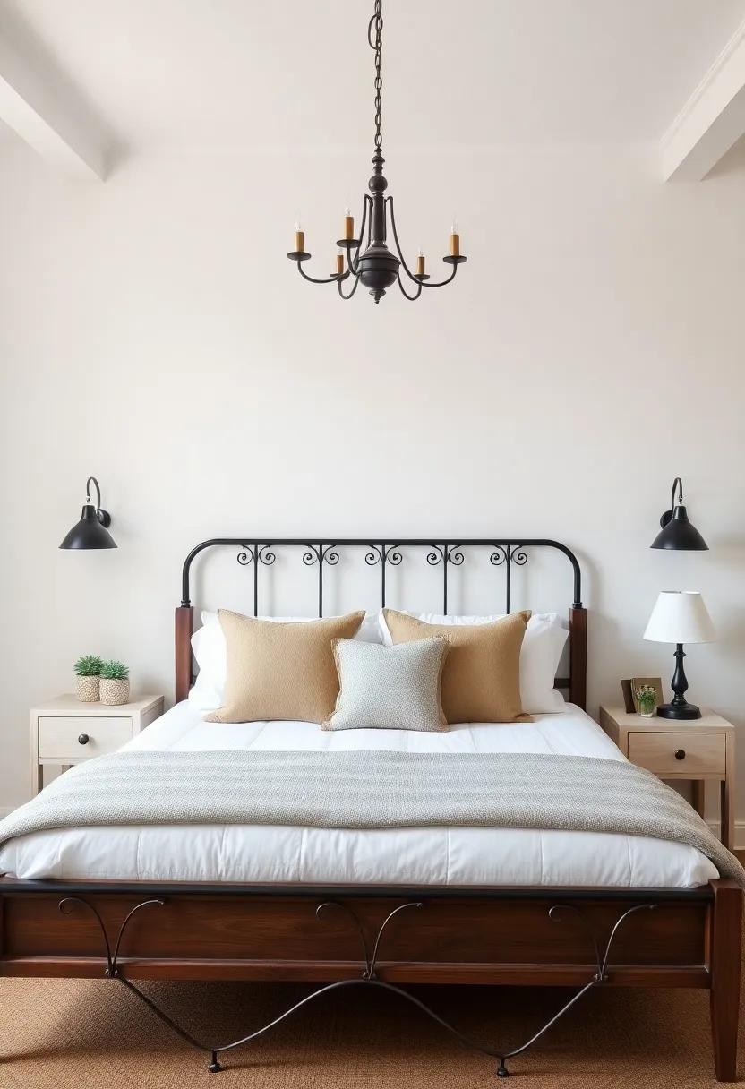 This careful layering not only highlights the beauty of wrought iron but also invites a warmth that makes the bedroom feel alive and welcoming. Embrace the art of layering with wrought-iron accents, and let your farmhouse bedroom blend style with functionality.