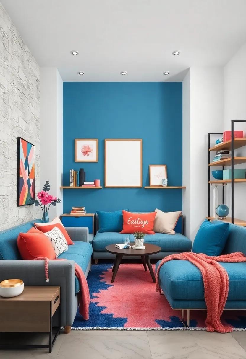 Accessories can transform any space, allowing personal flair to shine through. In a dreamy blue and coral retreat, consider using a mix of textures and colors to curate a unique atmosphere. Think of incorporating throw pillows with playful patterns or a collage of framed art that mirrors your personality.You might explore fun, quirky items like a beach-themed bar cart or a retro-style wall clock to bring a dash of whimsy to the room. Each piece should be a reflection of your interests, whether they’re inspired by travel, nature, or your favorite hobbies.
