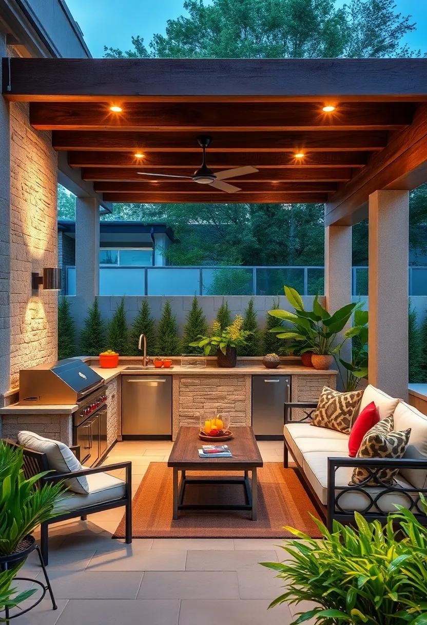 Furthermore, don’t overlook the importance of flooring in your outdoor kitchen design. Options like porcelain tiles or composite decking offer slip resistance and are easy to maintain, perfect for high-traffic areas. Including decorative elements such as LED lighting under counters or along walkways can enhance the ambiance and functionality, making your outdoor kitchen inviting even after sunset. To illustrate the best combination of materials, consider the following table: