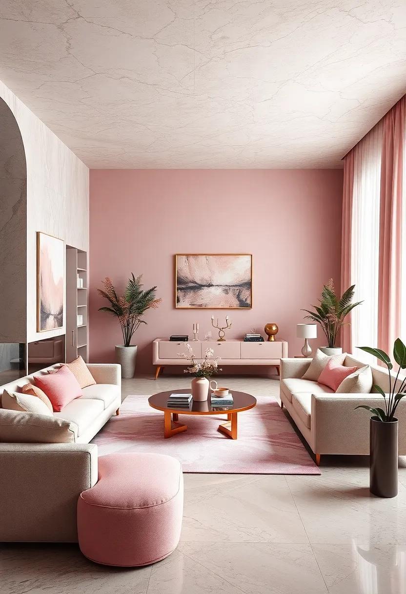 - Furniture Choices: Opt for plush sofas in muted pinks paired with rose gold legs.