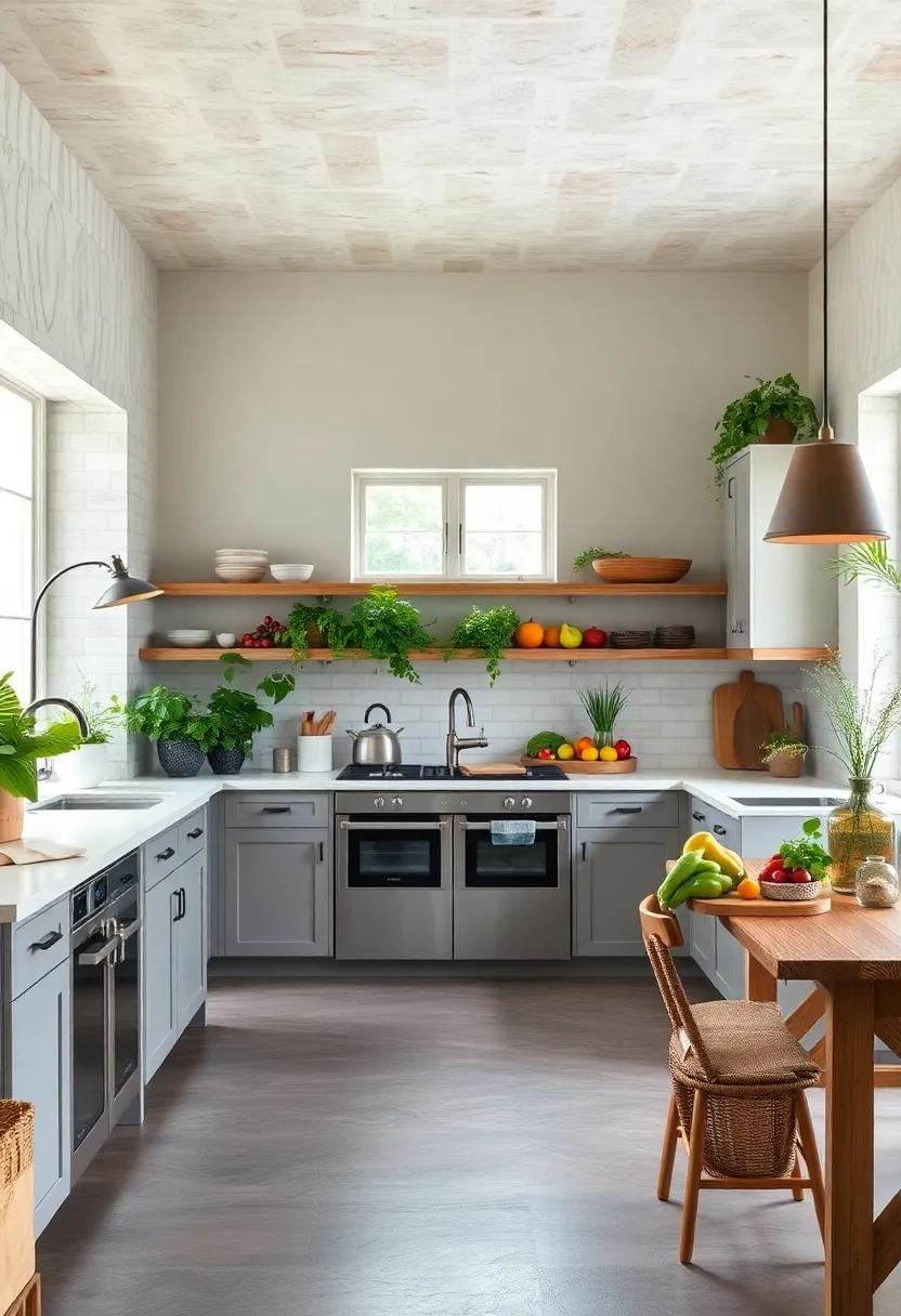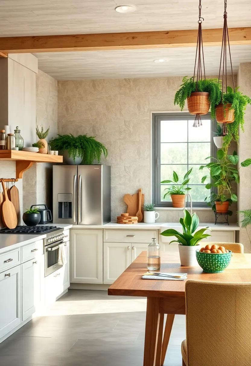 To further enhance the connection with nature, integrating lush greenery into these kitchens adds a lively charm. Potted herbs, hanging plants, and even small vertical gardens can easily be incorporated, offering both beauty and functionality. Consider the following elements for a captivating design: