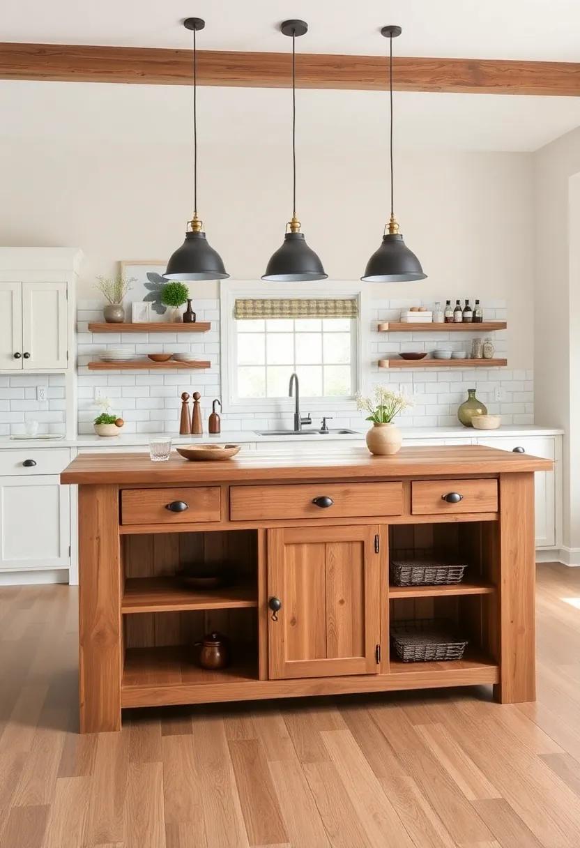 Integrating a farmhouse kitchen island into your space not only enhances its aesthetic but also enriches your daily living. This approach allows for a multifunctional area designed for cooking, entertaining, and even working on projects or homework. Consider adding features like built-in shelving for cookbooks, spacious drawers for utensils, and pleasant seating to create an inviting environment. Additionally, choose lighting that complements the rustic theme, such as vintage pendant lamps, to enhance the cozy allure. Whether you’re whipping up a family feast or enjoying a quiet morning coffee, a farmhouse kitchen island embodies warmth and togetherness, ensuring your home radiates comfort.