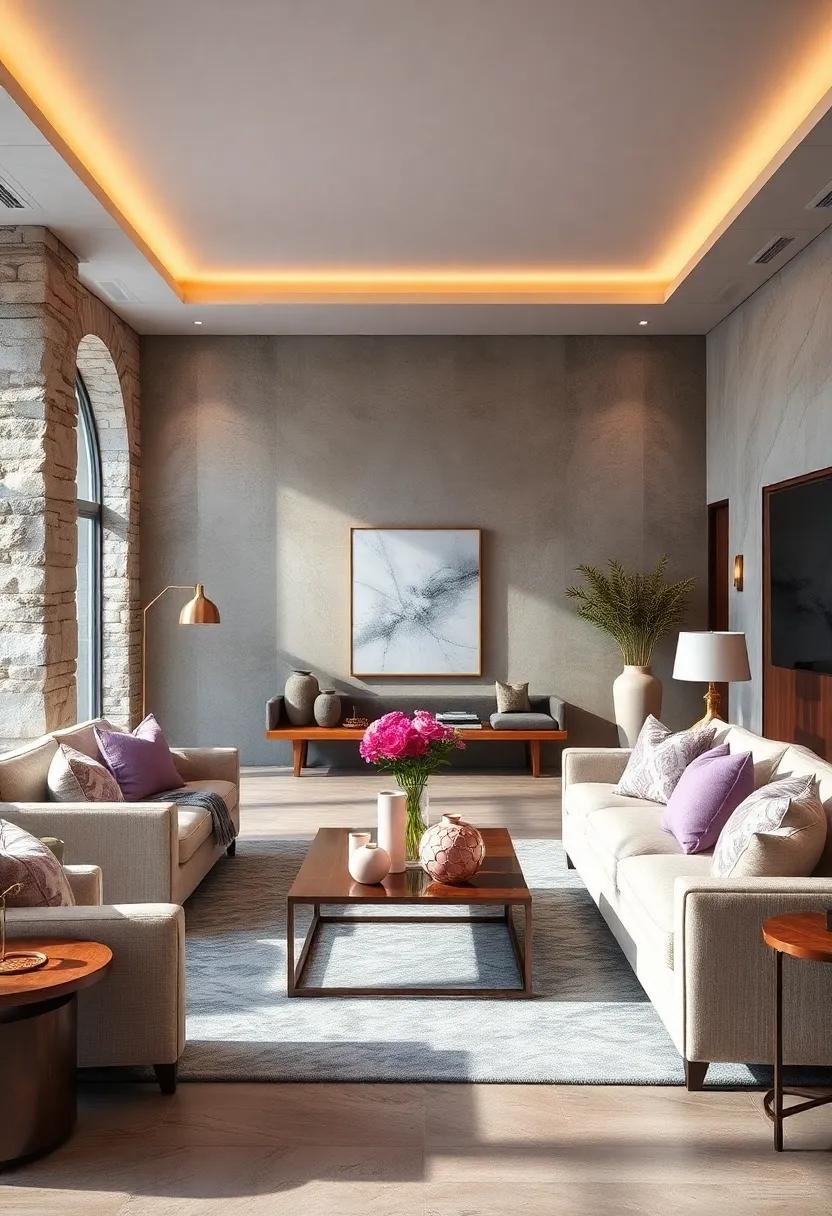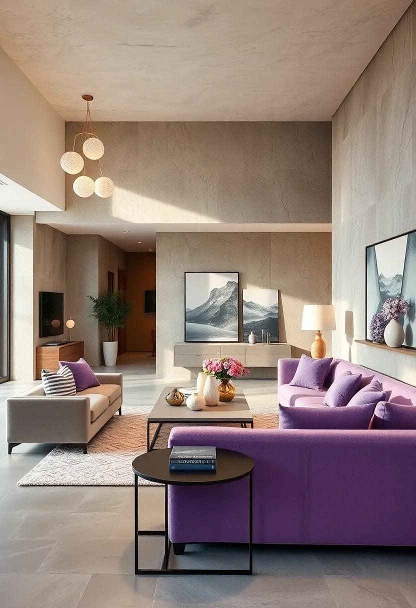 Complementary colors like lavender and platinum not only provide depth but also ensure versatility in decor choices. You can break down your living room design using a simple table to visualize where and how to apply these tones: