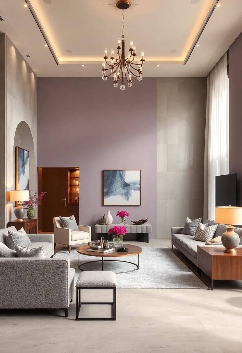 To create a stunning living room that exudes sophistication, integrating lavender and platinum can set the stage for a rich visual contrast. The lavender acts as a serene backdrop, while platinum accents introduce a touch of elegance. This combination not only delights the eyes but ensures that each element of the room stands out beautifully. Consider the following elements to enhance this color dynamic: