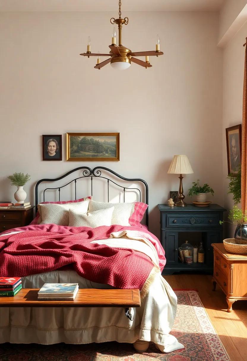 Equally enchanting are unique wall art pieces sourced from flea markets or local antique shops.Look for faded photographs or paintings in unconventional frames to tell a story on your walls. To complete the eclectic look,think about incorporating a quirky lamp with an antique finish that not only illuminates the bedroom but also adds a layer of character. Pair these items with a charming vintage-style rug that ties the room together, ensuring that your modern sanctuary feels both inviting and timeless.
