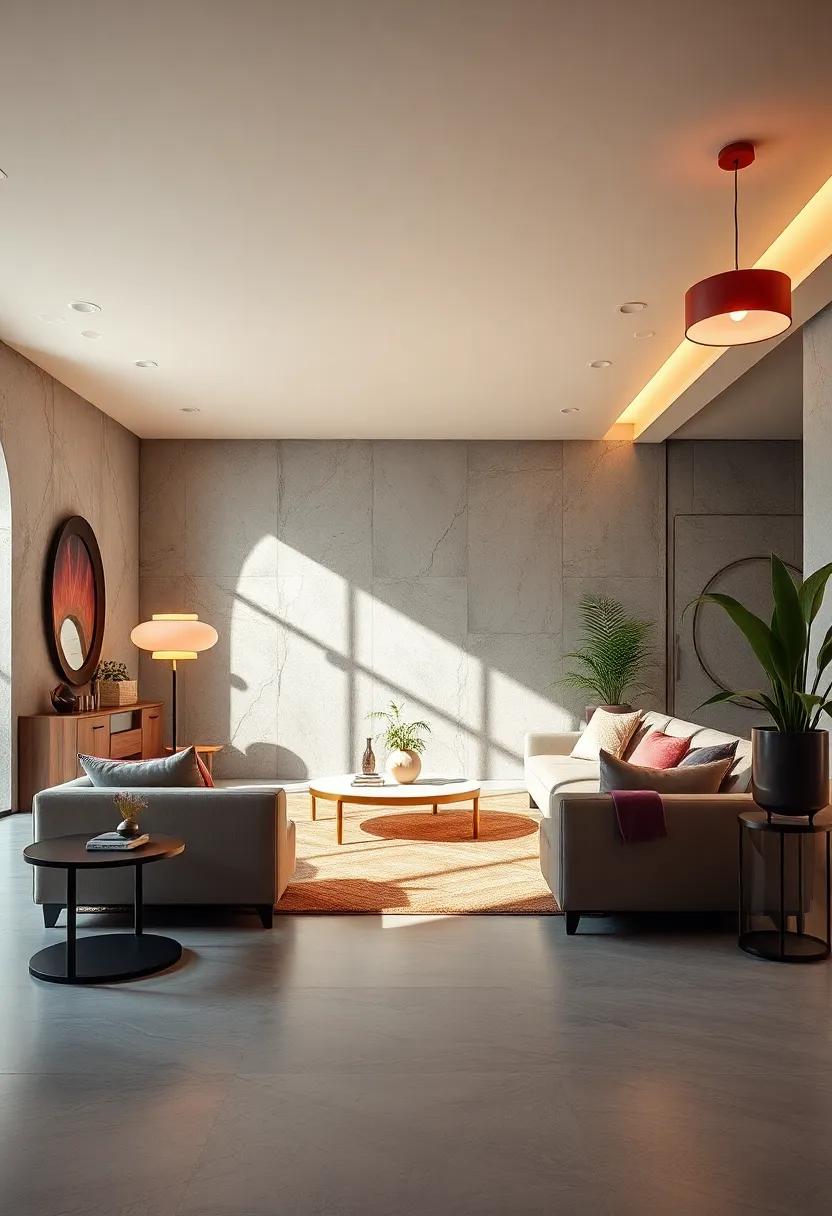 - Warm Colors: Use your lighting to introduce warm hues that contrast with the cool tones of metals and concrete.
