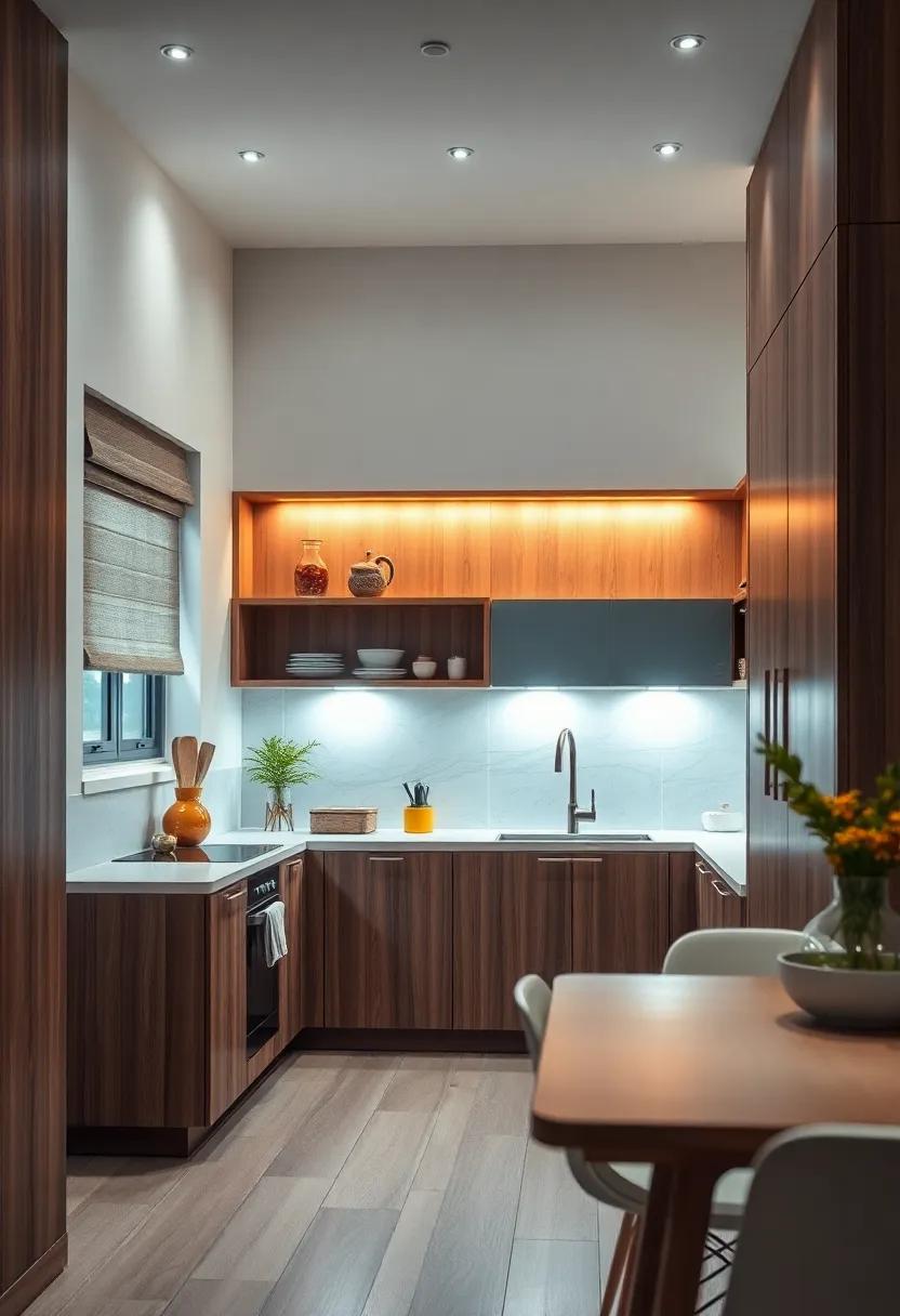 For a complete approach, consider integrating a color-changing LED system that can shift the hue according to your needs. This not only serves functional lighting for meal preparation but also mood lighting for gatherings or relaxing evenings. Create visual interest with the following elements: