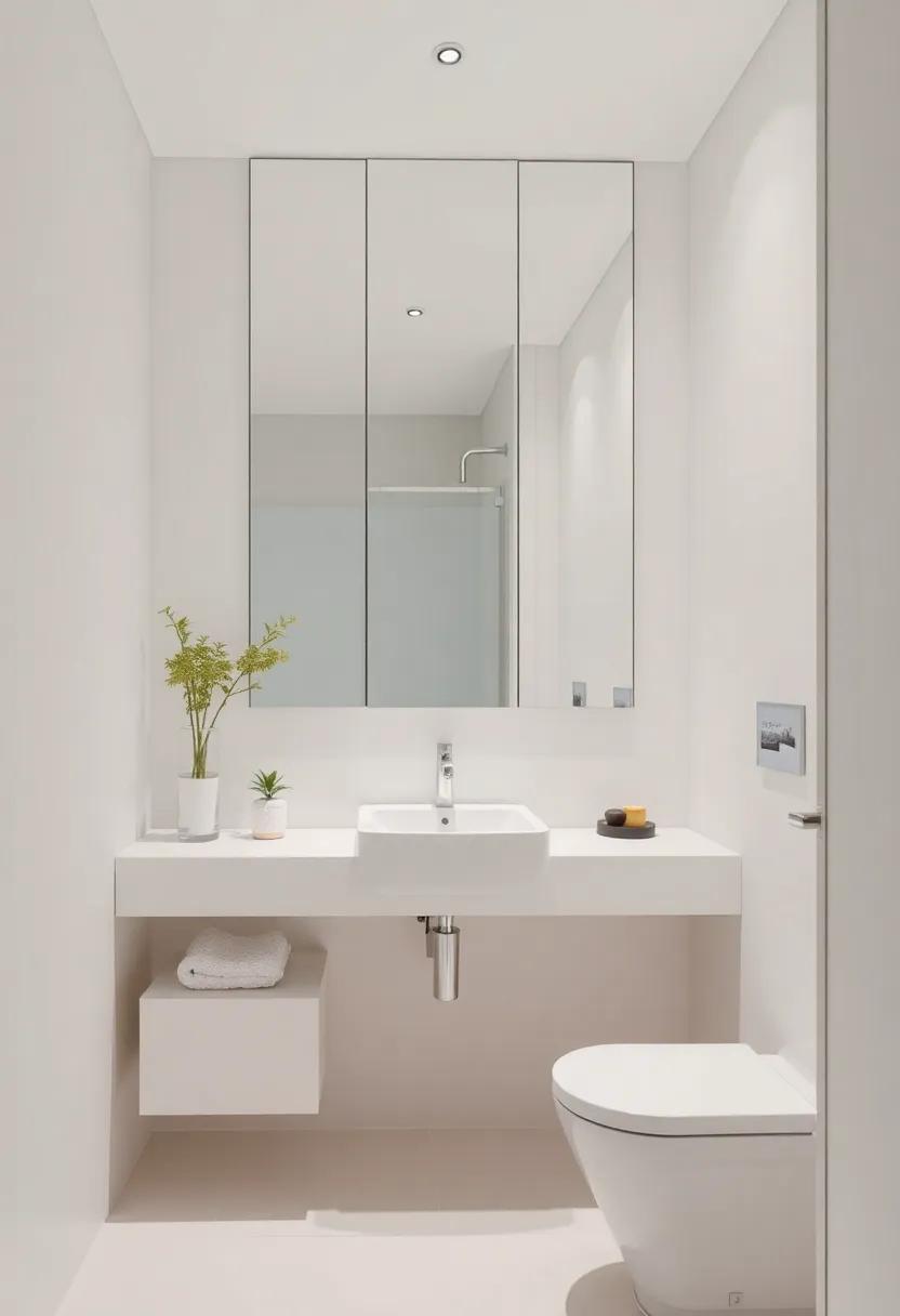 - Sleek Fixtures: Choose streamlined faucets and shower heads that complement the minimal aesthetic.