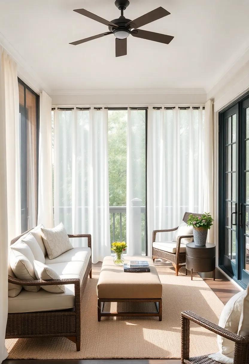 When reimagining your screened porch, soft dividers such as fabric curtains serve as an elegant solution for those seeking a blend of privacy and openness. These curtains can create a cozy nook without sacrificing the airy ambiance. Choose light, semi-obvious fabrics that gently filter light while still allowing gentle breezes to flow through. Options like linen, sheer cotton, or voile can enhance your space’s aesthetic, maintaining a harmonious connection to the outdoors while ensuring intimate moments remain shielded from prying eyes.