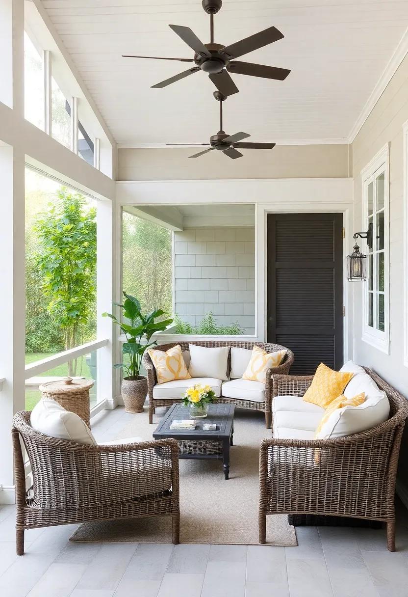 By integrating these textured throws into your screened porch design, you not only enhance the visual warmth but also elevate the sensory experience. Layer your throws with cushions of varying sizes and fabrics to create an inviting nook perfect for enjoying your morning coffee or an evening glass of wine.