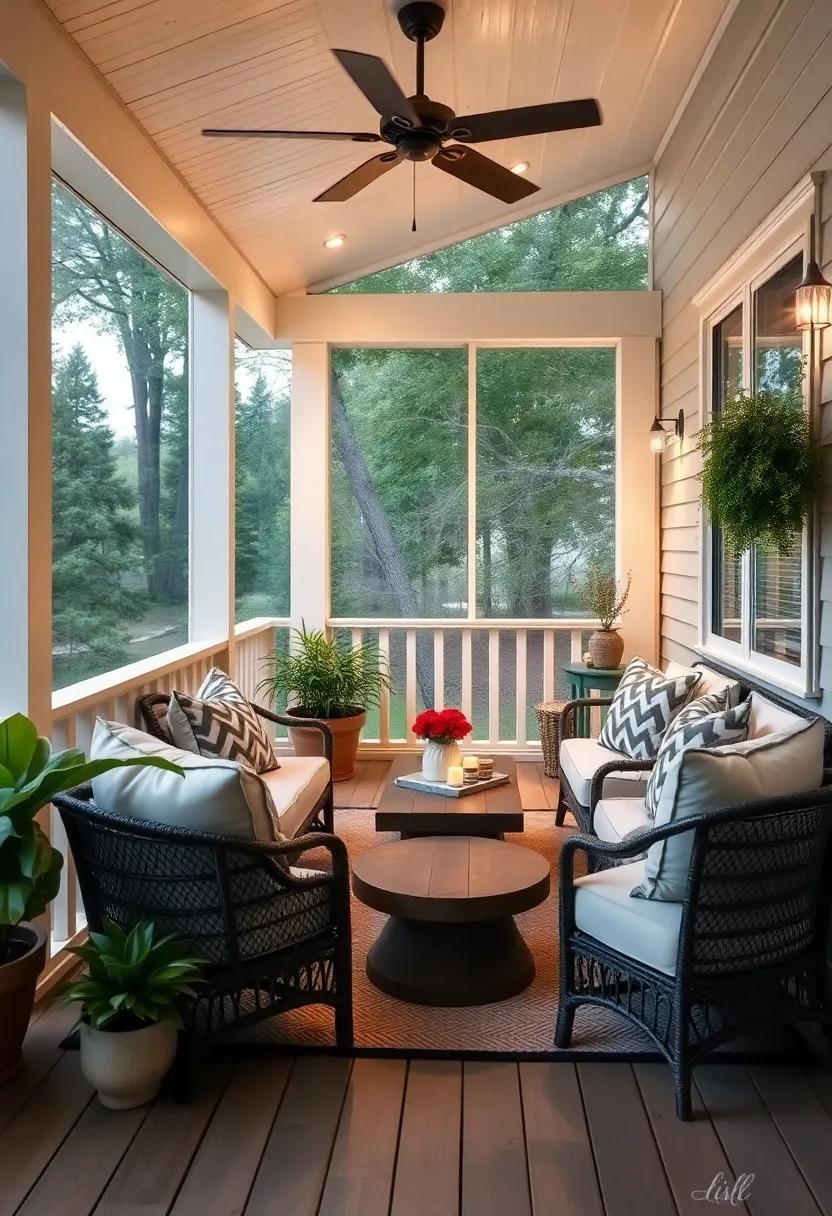 Enhancing your screened porch can create a thrilling connection with the outside world while still offering the comfort of home. Start with soft furnishings that invite relaxation: plush cushions, lightweight throws, and breathable fabrics. Choose earthy tones and nature-inspired patterns to bring the essence of the outdoors inside.Incorporate a variety of textures, such as wicker, cotton, and linen, to mimic natural elements, allowing your outdoor space to feel like an extension of your garden. Accentuate this serene atmosphere with fragrant plants and garlands of greenery,inviting the scents of nature to envelop your space.