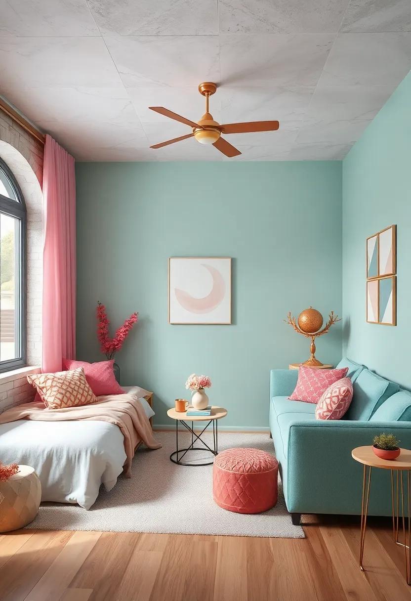 - Accent Walls: Paint one wall in soft mint and another in a gentle rose, creating a visually striking backdrop for the room.
